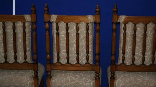 A MAGNIFICENT 6 SEATER DINING ROOM EXTENDABLE EXTENDABLE(153CM TO 216CM) TABLE, EXQUISITE HAND CARVING! EXCELLENT CONDITION! THE FABRIC IN FANTASTIC CONDITION!!! STYLE AND CLASS!!! BID FOR THE SET!