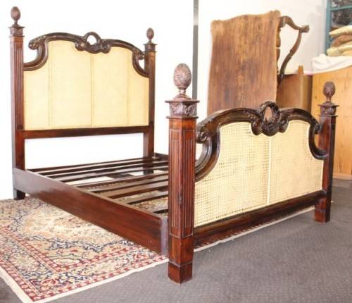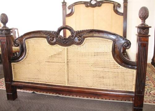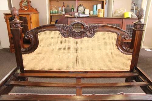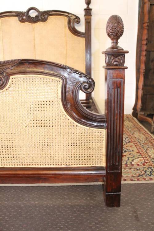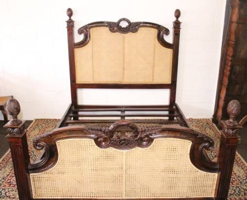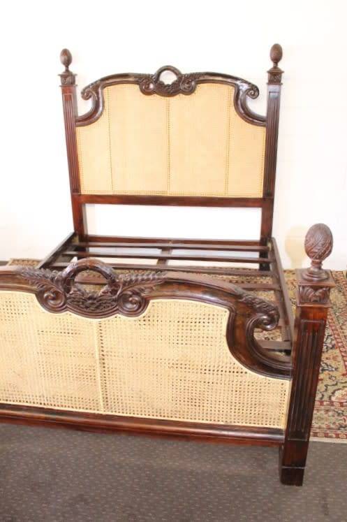 ***Stunning antique carved Rosewood French Cane bed***