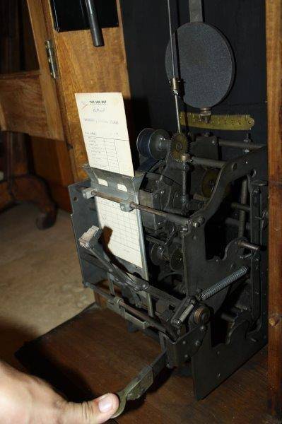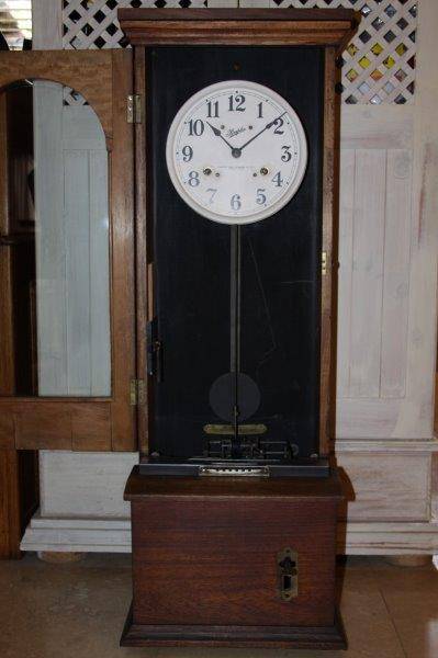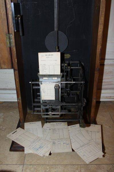 WE ARE OFFERING A MAGNIFICENT ANTIQUE SIMPLEX TIME CARD RECORDING MACHINE circa 1916 AND IT LOOKS LIKE IT WORKS PERFECTLY! THIS CARD RECORDER IS IN EXCELLENT CONDITION FOR THE AGE AND EVEN COMES WITH THE ORIGINAL KEY AND EXTRA TIME SHEETS!!! THIS IS A STUNNING, VERY RARE COLLECTOR PIECE!!! THE SIZE OF THE CLOCK IS APPROXIMATELY 420mm x 300mm x 1170mm HIGH.