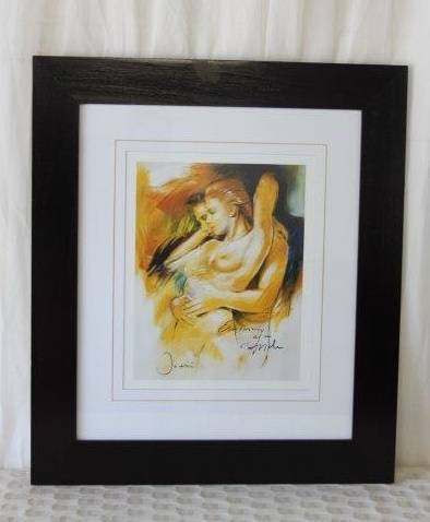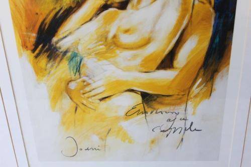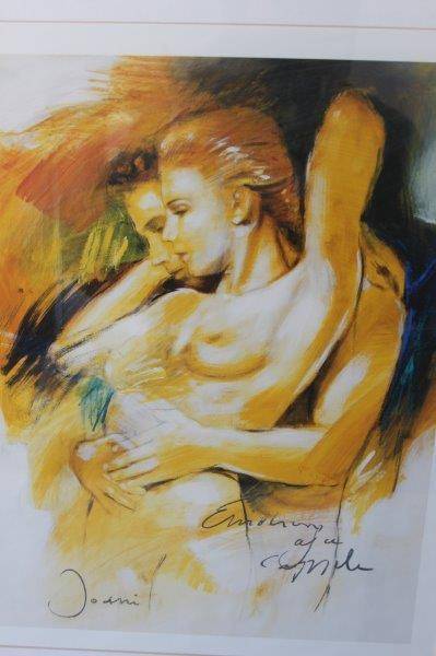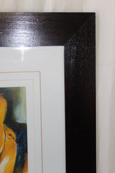 THIS BEAUTIFUL CLASSY SIGNED NUDE PRINT IS FRAMED IN A BROAD WOODEN FRAME AND IS FRAMED BEHIND GLASS AND MEASURES 680mm x 780mm HIGH. THE PRINT IS SIGNED, BUT I AM NOT ABLE TO DETERMINE THE ARTISTS NAME. THE PAINTING LOOKS TO BE TITLED "EMOTIONS AFTER CAMILE". THIS IS A TRULY STUNNING PRINT THAT WOULD LOOK AWESOME IN A BEDROOM OR HALLWAY.