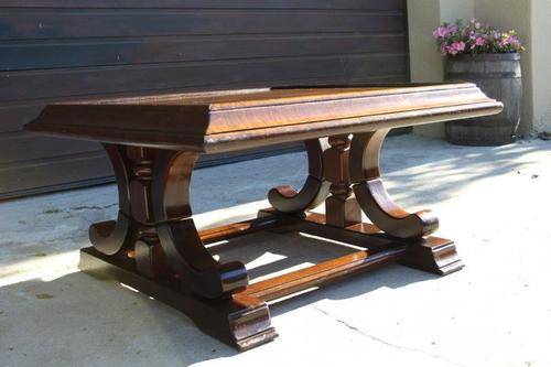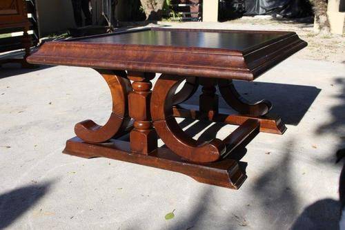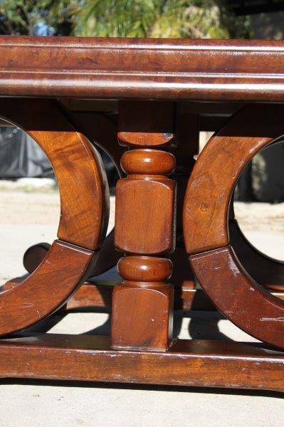 THIS MAGNIFICENT SOLID IMBUIA CENTRE COFFEE TABLE IS ABSOLUTELY AWESOME! THE TABLE IS SOLID AND HEAVY WITH MAGNIFICENT CHUNKY LEGS AND STUNNING DETAIL! THE SIZE OF THE TABLE IS APPROXIMATELY 850mm x 850mm x 460mm HIGH.