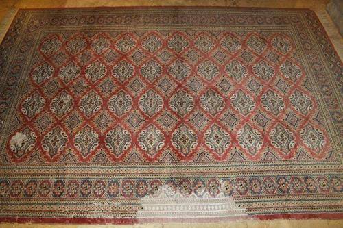 THIS LARGE 'WELL WORN' ANTIQUE PERSIAN CARPET IS STUNNING AND IN FAIR WORN CONDITION FOR THE AGE! IT IS ABSOLUTELY BEAUTIFUL WITH RICH DEEP PATTERNS THAT ARE A WORK OF ART! UNFORTUNATELY THE CARPET DOES HAVE WATER DAMAGE BUT I AM SURE THIS CAN BE "HIDDEN" UNDER A CHAIR OR TABLE. THE CARPET IS APPROXIMATELY 3000mm LONG x 2000mm WIDE. THIS IS A TOTAL BARGAIN!!!!