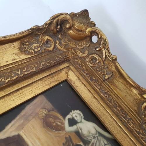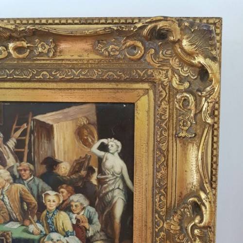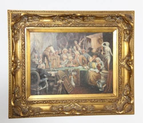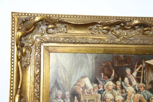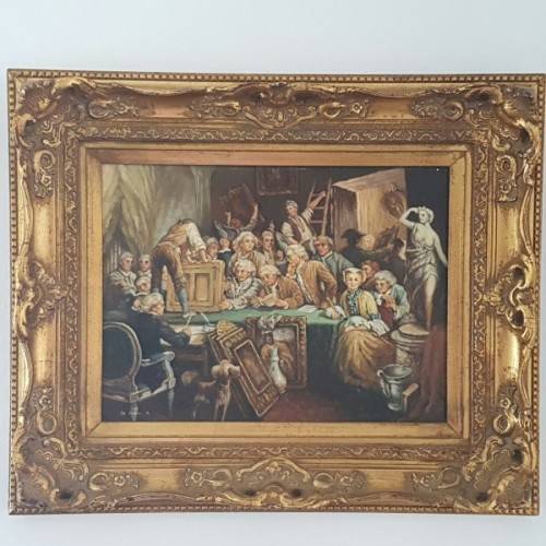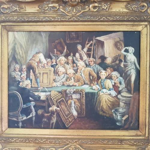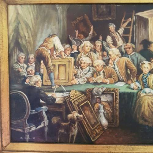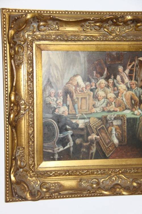 This magnificent original signed "R. De Greef" oil on board painting is in an spectacular ornate moulded antique gold gilded frame. The painting; "The Art Auction" is typical of the artist's style of art and the attention to detailing is incredible. Although not much is known about this Dutch/ Belgian artist, his work has been auctioned at leading auction houses in Europe and is most famous for his "Portrait of a Soldier". This incredible painting measures 59cm long x 49cm high (42cm x 32cm ex-frame). The frame is the authentic antique wooden moulded and gilded frame which alone is worth a fortune. This is a remarkable painting and would be a stunning edition to any art portfolio. Please view the pics carefully to fully appreciate this truly spectacular realism oil painting and to confirm the condition.