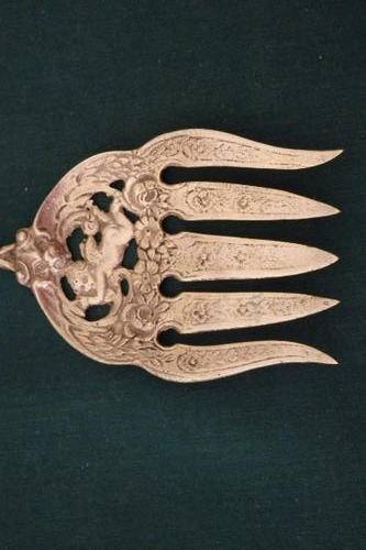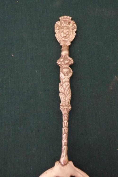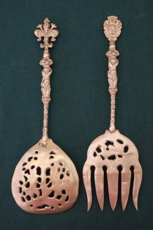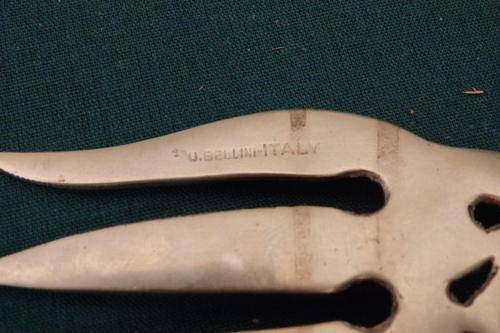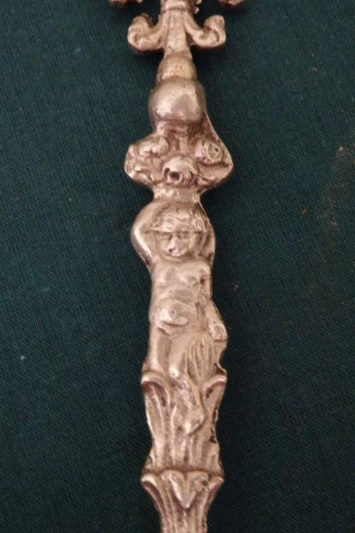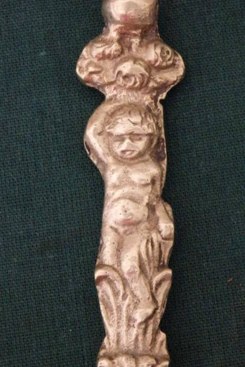 THIS MAGNIFICENT PAIR OF SIGNED ITALIAN MADE VINTAGE "BAROQUE STYLE" CHERUB FOOD/ SALAD SERVERS BY WELL KNOWN ITALIAN SILVERSMITH UGO BELLINI EACH MEASURE ROUGHLY 25cm LONG. UGO BELLINI STARTED HIS CAREER IN 1946 AND WAS EXCEPTIONALLY WELL KNOWN FOR HIS "BAROQUE STYLE" LADIES COMPACTS WITH ENAMELLING AND EXQUISITE DETAILING. UGO BELLINI WORKED IN GOLD, SILVER, SILVER PLATE AND BRASS AND ALSO EVENTUALLY BRANCHED OUT INTO ORNATE JEWELLERY. THIS SET IS SILVER PLATE ON NICKEL.