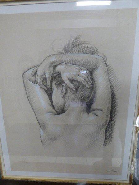 AN UNQUESTIONABLY STYLISH VERY LARGE (MUCH LARGER THAN THE OTHER TWO) FRAMED PRINT OF “NOSE IN THE PILLOW” BY RENOWNED FRENCH ARTIST FRANCINE VAN HOVE. SHE IS KNOWN FOR HER PAINTINGS OF YOUNG WOMAN WITH DREAMING ATTITUDES. HER WORK COUNTS MORE THAN 400 PAINTINGS (all privately owned) AS WELL AS NUMEROUS DRAWINGS AND PASTELS. THIS FRAMED PRINT WILL BRING PURE CLASS AND STYLE TO YOUR LIVING AREAS.THE FRAME IS 98cm x 114cm HIGH.