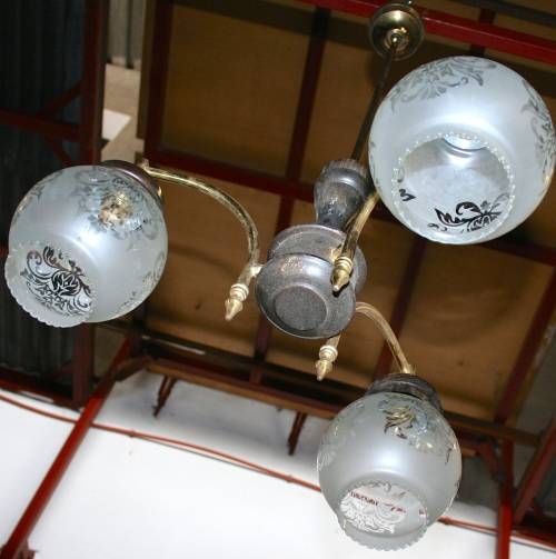 A MAGNIFICENT VINTAGE/ANTIQUE 3 TIER WOODEN BRAS CEILING LIGHT FOR THAT ANTIQUE / SHABBY CHIC / VINTAGE HOUSE