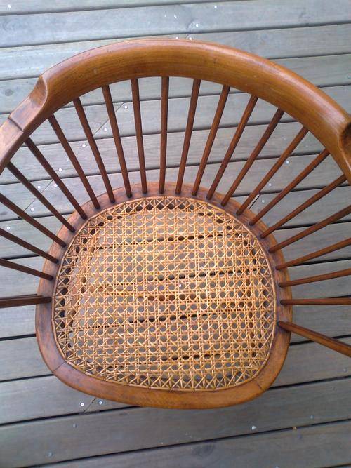 A mahogany Arts and Crafts chair (early 20th century), with cane seat, and loose cushion, typical Arts and Crafts style legs, back height 68cm, width 63.5cm. An extremely elegant little chair which would look great in a classic or a modern styled home. In beautiful condition. Buyer to arrange collection from Knysna. If necessary, I'll be willing to obtain a shipping quote.