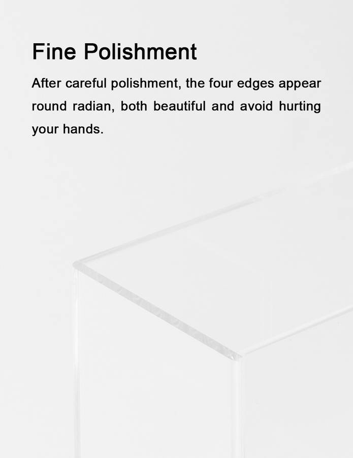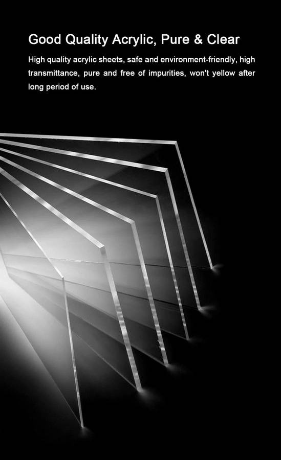 2. Good Quality Acrylic, Pure & Clear High quality acrylic sheets, safe and environment-friendly, high transmittance, pure and free of impurities, won`t yellow after long period of use.