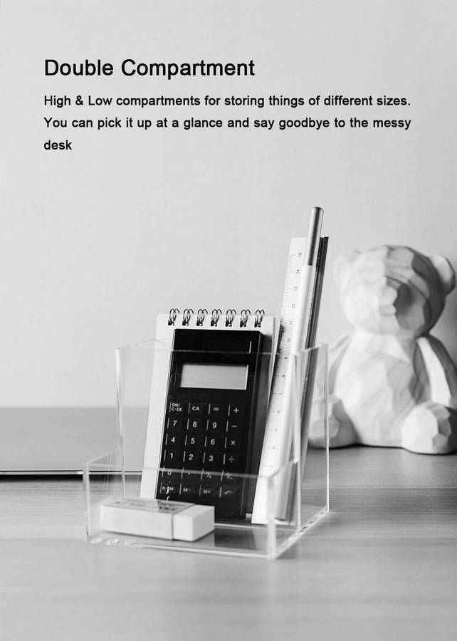 Features: 1. Double Compartment High & Low compartments for storing things of different sizes. You can picks it up at a glance and say goodbye to the messy desk