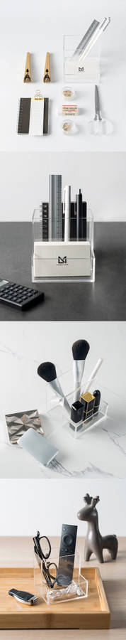 Product Name: Acrylic Desktop Organizer Material: Acrylic (Polymethyl Methacrylate) Color: Clear Transparent Dimension (L*W*H): 101*99*93mm