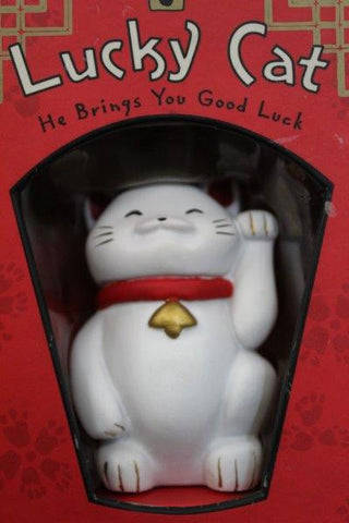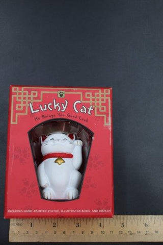 This Fortune Cat, or Maneki Neko, is a lucky cat charm that's very popular in Japanese and Chinese cultures. The Maneki Neko is a talisman that is believed to attract good luck and fortune for its owners.The cat is still in the box, the box stands 13.5cm high. The booklet is in the box.
