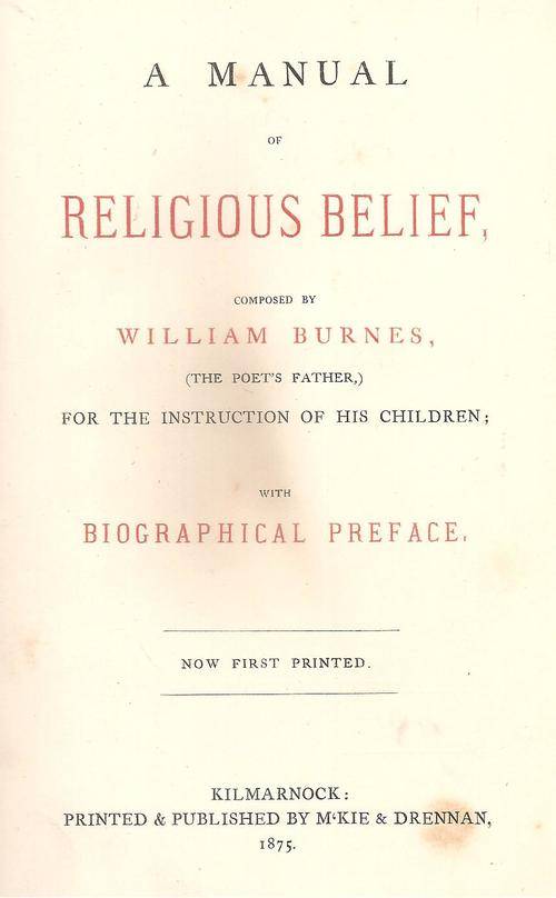 A Manual of Religious Belief Composed By: William Burns (Father of Robert Burns ) Limited Edition