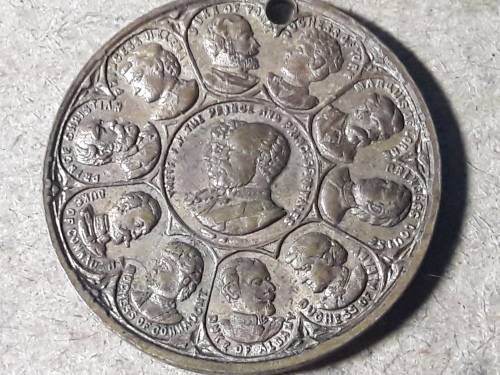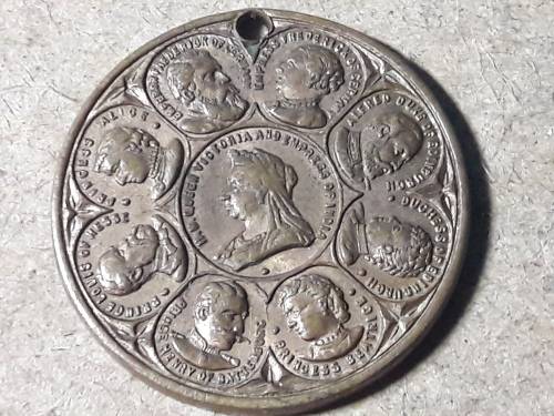 A medalet, minted by Alexander Miesch of the Birmingham mint, depicting Queen Victoria and her family -- Issued 1894-1895 (possibly in anticipation of the 1897 60 year celebration of the reign of Queen Victoria.