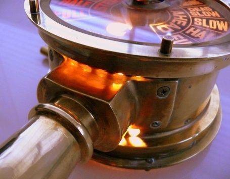 A MINIATURE (44cm)SHIP'S TELEGRAPH BY CHADBURNS LIVERPOOL&LONDON,TWIN HANDLES ,SPEED POSITIONS
