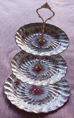 A NICE BIG 3 TIER PORCELAIN CAKE PLATE WITH HANDEL
