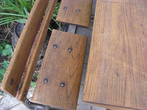 THE SEATS TILT UP. AMPLE STORAGE FOR SCHOOL BOOKS. MADE FROM OAK