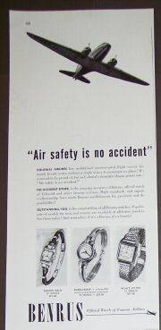 1946 VINTAGE AD WHICH ADVERTISED THE FACT THAT BENRUS TIMEPIECES WERE APPOINTED TIMEKEEPERS TO SOME FAMOUS AMERICAN AIRLINES. NB. I RESERVE THE RIGHT TO WITHDRAW THIS WATCH WHILE NO BIDS ARE STRUCK.