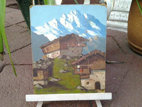 A Painting of a house in Switzerland- on a canvas board!