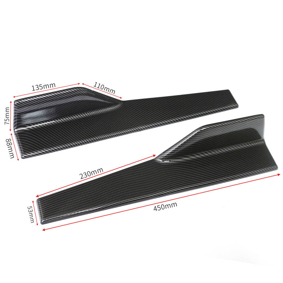 Specification: -Fitment:Universal -Material: PP Plastic -Color:Carbon Fiber Look -Type: Car Body Side Skirts -Position: Side Skirt Extension -Side Skirt Length: 45cm/17.72in -Size:45*5.3*7.5cm/17.72*2.09*2.95in Features: -Easy installation and easy to use. -New and nice qulity, durable to use. -A Perfect Aftermarket Replacement. -Universal modified side skirt for car sedan. -While the side skirts don't affect the front ground clearance too much, it enhances the side extension of the in a very pure and exciting way. Package Included: 2 x Side Skirts 10 x Screws Note: - Please allow 1-3CM differs due to manual measurement. - Due to the different display and different light, the picture may not reflect the actual color of the item. Thanks for your understanding.