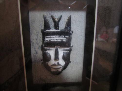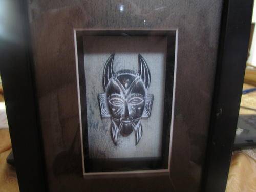 A PAIR OF AFRICAN BOXED WALL HANGINGS WITH MASKS!! SIZE 16 5 CM WIDE X 20.5 CM HIGH!! |