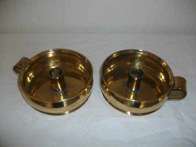 A pair of lovely round brass candle holders items are in good used condition nice find for the collectorplease have a look at my other listings *free sprit*thank you
