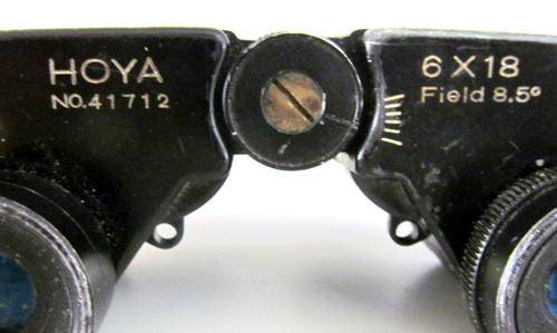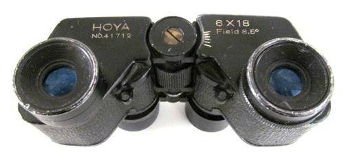 A pair of Hoya field glasses.Some rubbing of paint and traces of dust inside but this item still works well with clear vision.