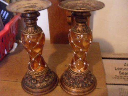A FABULOUS PAIR OF ART DECO STYLE GLASS AND METAL CANDLE  HOLDERS....