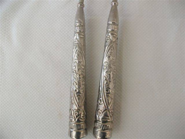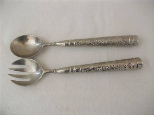 A pair of lovely orante sliver plated looking vintage style salad serves item in good used conditionplease have a look at my other listings *free sprit*Thank you