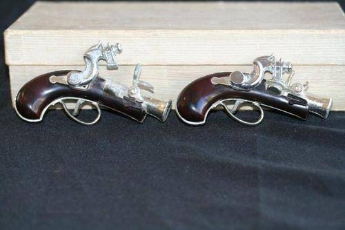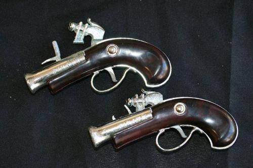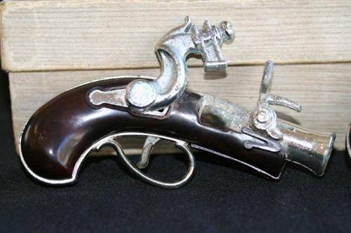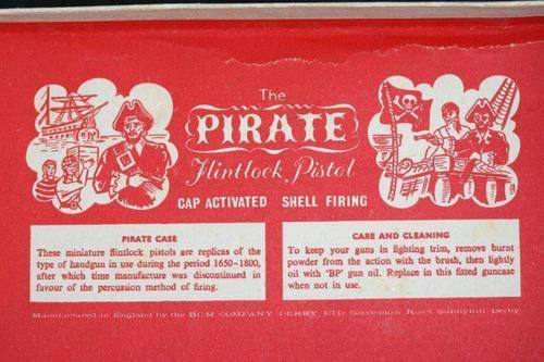 THIS IS A STUNNING AND VERY RARE PAIR OF PIRATE 'CAP' PISTOLS THAT STILL FIRE!!! THEY WERE MANUFACTURED IN ENGLAND BY BCM COMPANY DERBY Ltd IN THE 50's. BCM COMPANY WAS FORMED IN 1948 AND WENT OUT OF BUSINESS SOMETIME IN THE 60's. THESE GUNS AND OTHERS MADE BY THE COMPANY ARE VERY DESIRABLE AND VERY COLLECTABLE - SIMILAR TYPE BCM GUNS SELL FOR OVER $1000 OVERSEAS AND ON eBay... THEY HAVE TONS OF CHARACTER AND ARE QUITE AMAZING. PLEASE VIEW THE PICS VERY CAREFULLY FOR MORE DETAIL AND CONDITION AS THIS FORMS PART OF THE DESCRIPTION. STANDARD POSTAGE AND PACKAGING OR PLEASE ARRANGE TO COLLECT IN BOKSBURG.