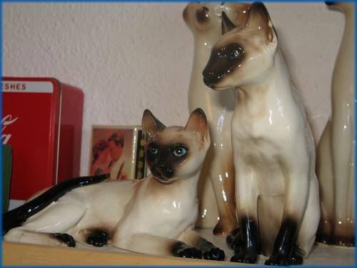 The pictures on the shelf were taken with a flash and they show the ivory siamese shade better.