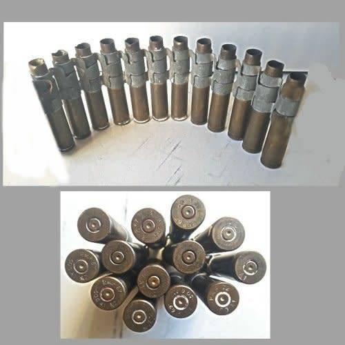 A Peace Of 12.7 mm. (0.5 inch) Browning Machine Gun Belt With Eleven Shell Casings In It.