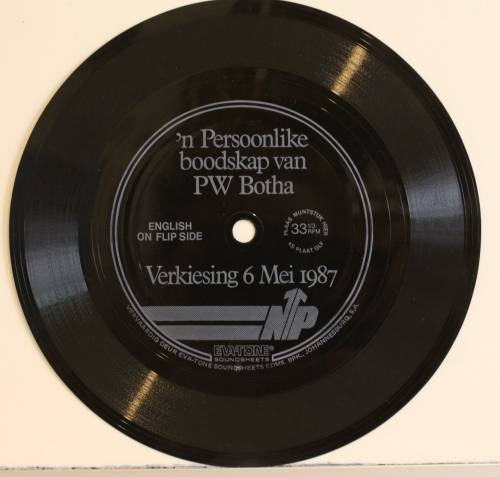 A personal message from PW Botha election 6 May 1987 33rpm 7" sound sheet