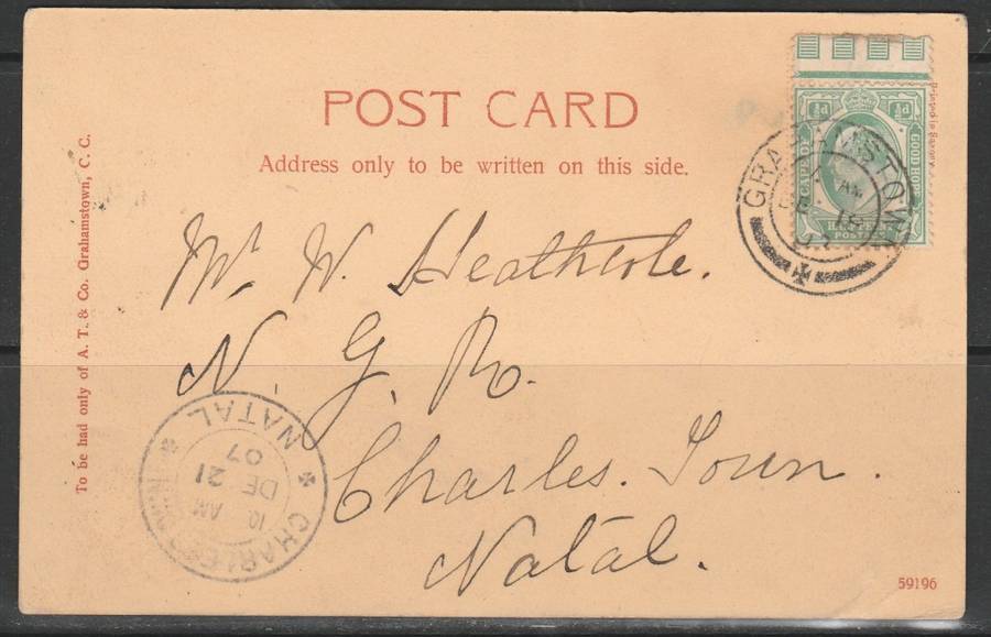 A PICTURE POST CARD SHOWING A VIEW FROM STATION GRAHAMSTOWN USED LOOK SCANS X 2