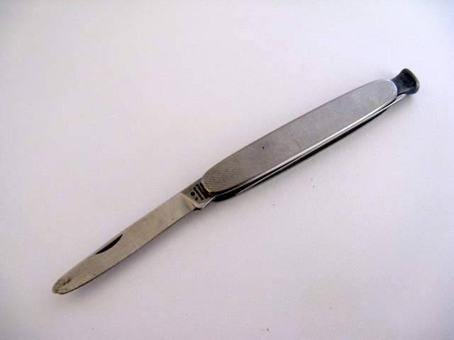 A pipe, pipe cleaner and a pocket knife---except for the "S" this pipe has no makers name.