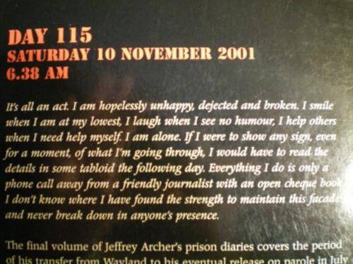 Discription: Macmillan 2004. Soft cover. Condition: The book has been read and cover is slightly bent, with crease on back. There is slight wrinkling on last quarter of page block due to damp, otherwise very good condition. "The final volume of Jeffrey Archer's prison diaries, covers the period of his transfer from Wayland to his eventual release on parole in July 2003."