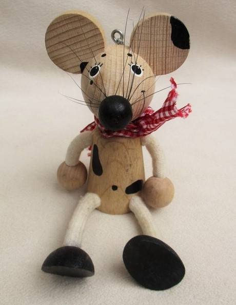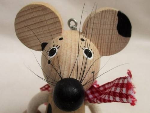 A QUAINT WOODEN SHELF-SITTER MOUSE WITH LOTS OF VERY LONG WHISKERS!!