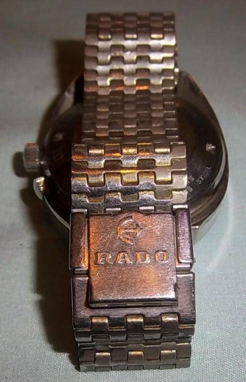 A RADO, CAPTAIN HOOK, AUTOMATIC DAY AND DATE MEN'S WRIST WATCH. OVER ALL GOOD CONDITION WITH MINOR WARE. WORKING. ORIGINAL CROWN AND STRAP. DAY AND DATE AT 3.