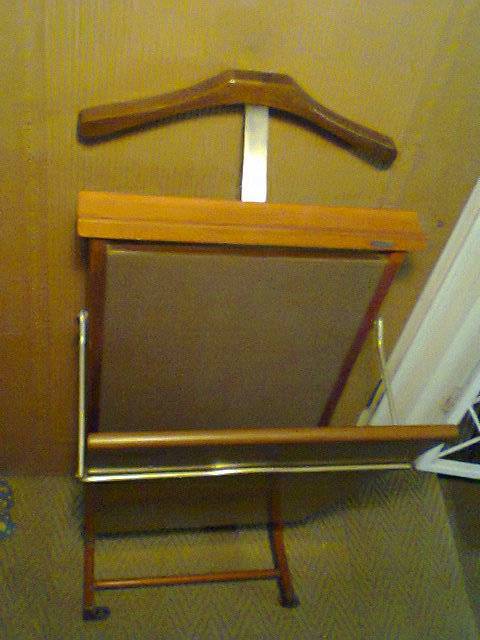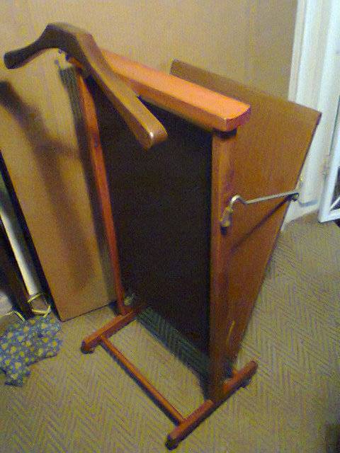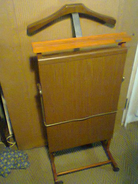 A 1950's Decor plus for display in the home. A Very Rare Dumb Waiter / Men's Valet with Trouser press & Retractable Tie Rail, Trinket Shelf + 4 wheels Made by "REGUITTI" Size: 1000mm (1m) Tall x 320mm Wide x 425mm Long.