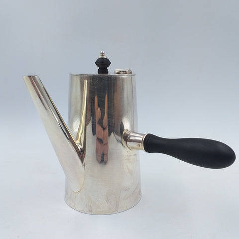 This rare antique Art Deco silver plated Hallmarked James Dixon & Son hot-chocolate/ cocoa pot with a Bakelite handle and lid knob is a wonderful find and is in beautiful condition for its age. The base of the cocoa pot is hallmarked as follows: EP confirming it is silver electro plated; JD&S confirming it was made by James Dixon & Son and has their trade mark Trumpet in a shield mark. The cocoa pot would have been made in the early part of the 20th century making is around 100 years old.
