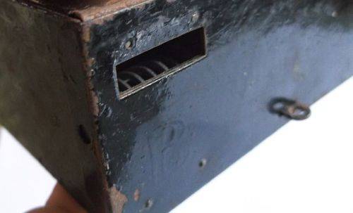 According to the dealer I bought this neat metal money box from , it was used by a bus conductor , it is marked B 20813