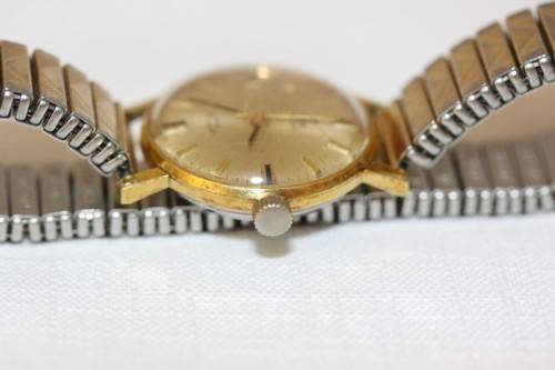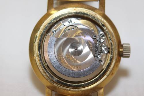 This rare vintage ladies yellow gold electro-plated Swiss made "Tudor" Princess Rotor Self-winding 21 Jewell watch is a superb find and based on the serial number was made in 1966. The watch is in complete working condition and is a very elegant ladies watch. It definitely has a Rolex quality feel to the watch. The watch strap is a two-tone German made "elasticised" Fixo-flex steel strap. The watch measures 1.5cm across the dial. There are some scuffs and scratches on the glass which is to be expected from a 51 year old watch. This is a fantastic find and something really special to add to a watch collection. The pics show the movement of the seconds hand confirming that the watch is working. Please view the pics carefully to fully appreciate this stunning vintage Tudor watch and to confirm the condition.