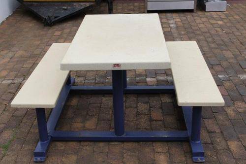 THIS IS AN AWESOME PICNIC / PATIO TABLE AND BENCH SET! IT'S IN GREAT CONDITION FOR THE AGE AND WILL WORK PERFECTLY ON A PATIO OR AROUND THE POOL! THE SIZE OF THE SET IS APPROXIMATELY 1300mm LONG x 1400mm WIDE FROM BENCH TO BENCH. PLEASE VIEW THE PICS VERY CAREFULLY FOR MORE DETAIL AND THE CONDITION; WHAT YOU SEE IS WHAT YOU GET! POSTAGE IS NOT POSSIBLE SO PLEASE ARRANGE TO COLLECT IN EDENVALE.