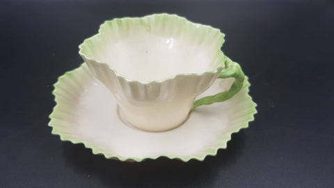 This exceptionally rare antique Belleek of Ireland hand painted fine porcelain Teacup and saucer duo in the Neptune Green range is an insanely rare find and only a hand full of these antique Belleek pieces are available around the world. There are no chips or cracks in either the teacup or saucer. The Neptune range was manufactured in green, white, pink and yellow. The black stamp at the base confirms this duo is a first series and was made between 1891 and 1926. The teacup measures 10cm including the handle x 5.5cm high and the saucer is 13.5cm across.