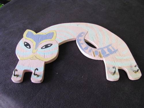 A RETRO CAT SHAPED KEY RACK WITH 4 HOOKS