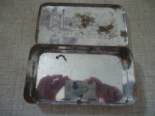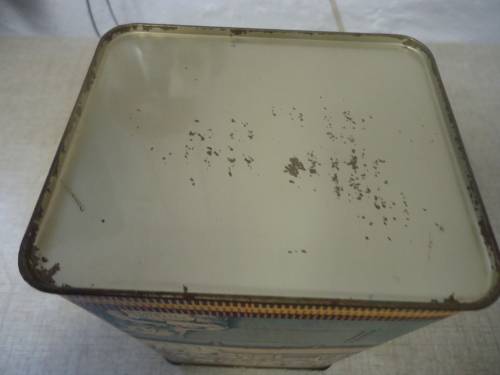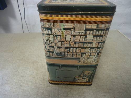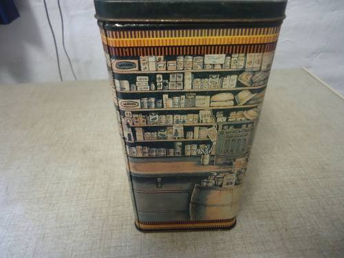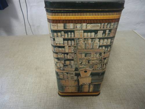 GROCERY SHOP TIN WITH SEPARATE LID -25 CM HEIGHT 15 CM LENGTH 12 CM WIDTH -GREAT CONDITION