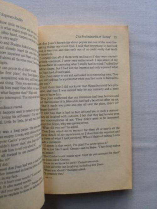 Author(s): Carlos Castaneda Title: A Seperate Reality Publisher: Penguin This Edition: Penguin edition 1973, reprinted 1977 Place Of Publication: Great Britain First Published: 1971 (USA) Binding: paperback Number of pages: 268 Weight: 144g Condition: An old paperback, though still perfectly readable. Cover has wear. Binding and all pages intact and sound. Has been inscribed. Please see pictures below, as these form part of the description.