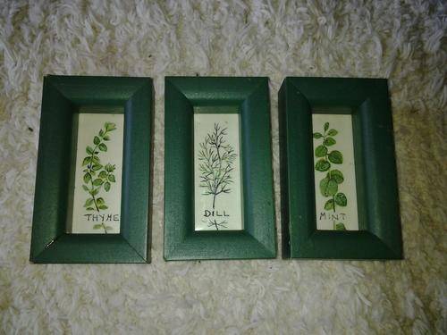 A set of 3 Herb pictures in very thick ornate green frames..... (please see pepper set)