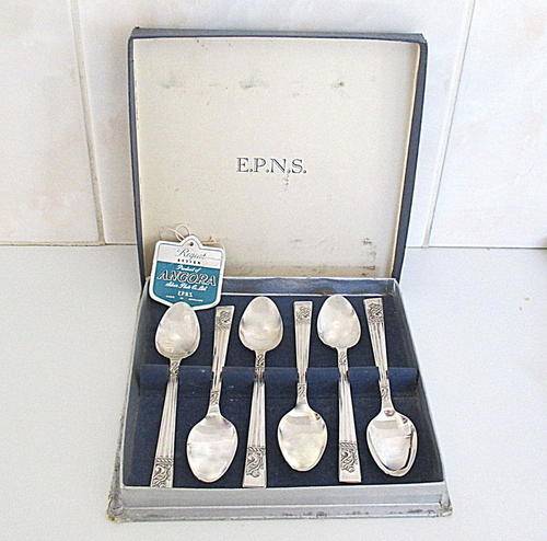 A SET OF BOXED SILVER PLATED TEASPOONS---Note.