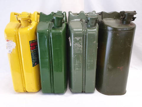 Four metal 20 litre Jerry cans, one price for all four. The cans are all in usable condition with some wear as shown in the pics. There is some rust and scuffs. Handy to have for off road bikes, petrol lawn mowers and weed eaters etc. The cans measure 35cm x 16cm x 47.5cm high.