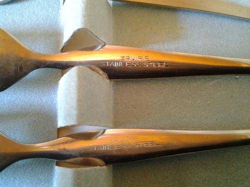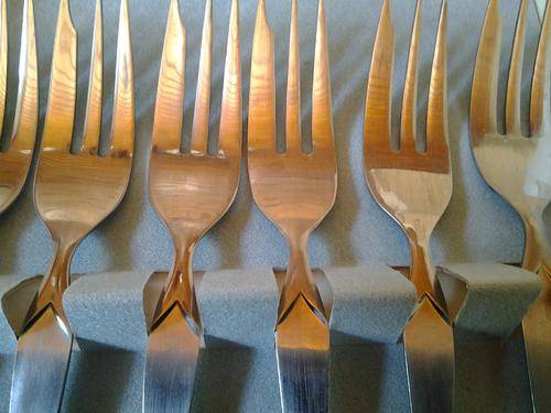 A set of "Impala Squire", stainless steel cake forks in the original box.